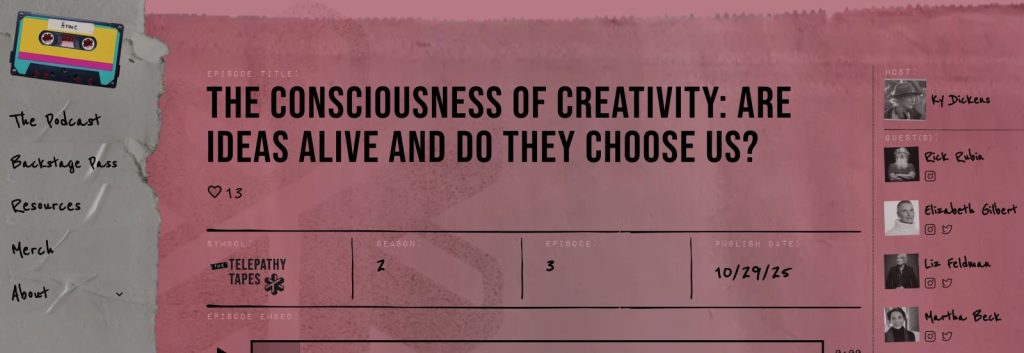 This week I listened to a podcast that had me grinning and nodding through most of its 53 minutes. In Season 2, episode 3 of the Telepathy Tapes, Ky Dickens explores the nature of creativity and inspiration with special guests author Elizabeth Gilbert, music producer Rick Rubin, and showrunner Liz Feldman. (You can listen to it here or anywhere you listen to podcasts.)