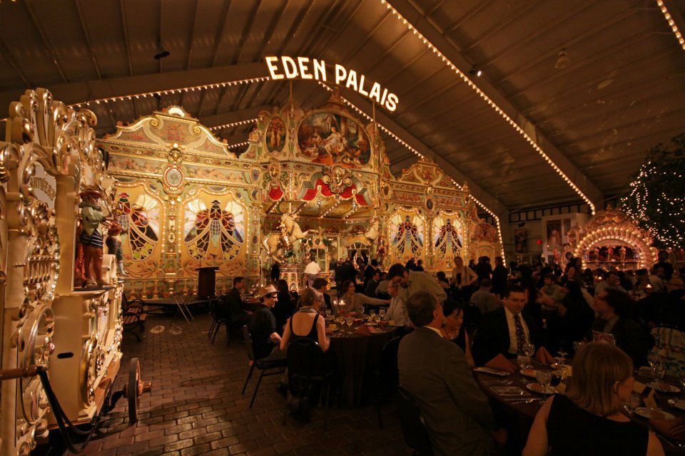 Following the speeches, dinner, dessert, and cordials, Greg Leifel, the Foundation Director at Sanfilippo announced that guests could ride the antique carousel. The crowd cheered, loudly, then ran to stand in line. What followed is best expressed in a few photos: