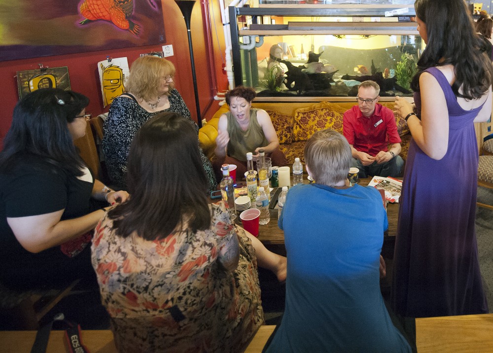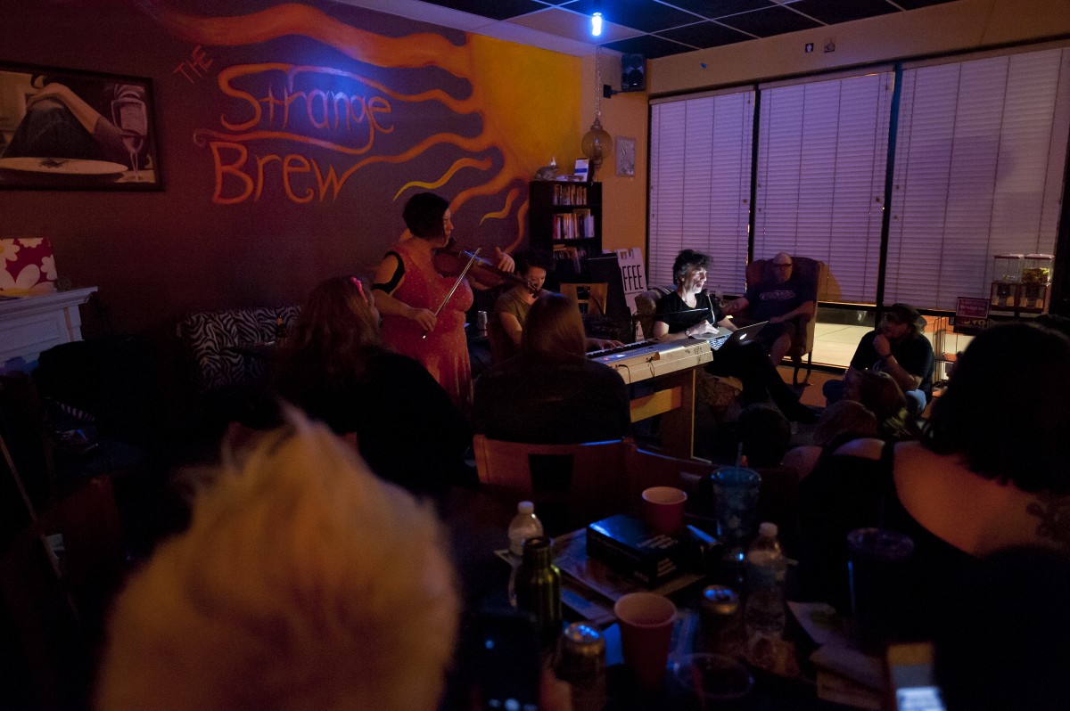 After lunch and a quick change, we got to Strange Brew and settled in, watching the rest of the attendees arrive with potluck offerings and anticipation for the evening.