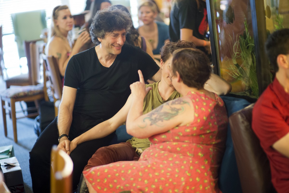 The evening closed with photo booth portraits on the couch, where folks could pose with Neil and Amanda. (You can see the portraits and candids by photographer Marc Lebryk on his Flickr page.)