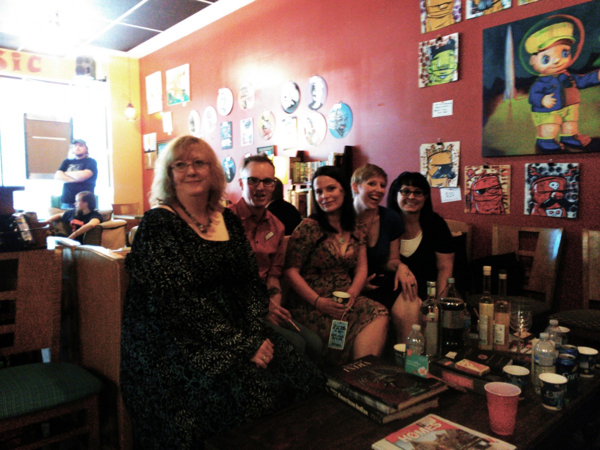I was so happy to be at a coffee shop, because in addition to some wine and spirits, I could enjoy Joan’s amazing coffee (if you’re sad you didn’t get to have any, you can order from the Strange Brew on their website, Cafe Yarns.) I also got the chance to sample the “Neil Gaiman” specialty coffee drink. Back in 2009 (I can’t believe it’s been four years!), there was a discussion on the internet about what a Neil coffee would taste like. Joan came up with her concoction (it has Neil’s honey!) and continues to donate the proceeds to the CBLDF. You can read Joan’s blog entry about it from 2009.