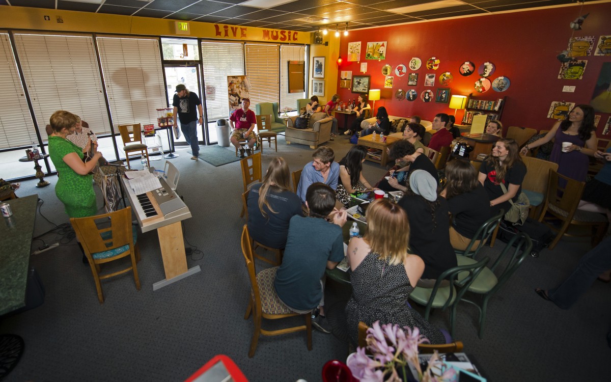 Yesterday morning I joined Madeline and Sean on another of our road-trips in Madeline’s orange Element, caravanning with Maura, Tina, and Mindy to Indianapolis to attend Amanda Palmer’s house party at The Strange Brew Coffee House. (If you’re unfamiliar with Amanda’s house parties, you can read her recent post about them on her blog.)