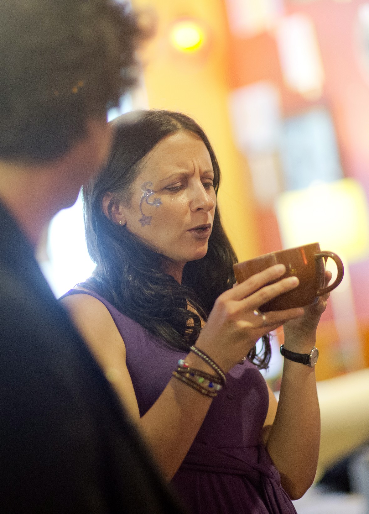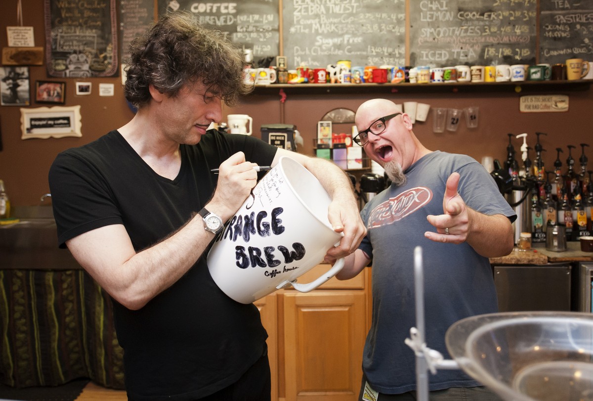 While our little group was gathered around talking with Amanda about the Amanda Palmer Tarot Kickstarter, Neil brought a large mug of the “Neil Gaiman” over to Amanda for her to sample. She did, then shared the mug with us.